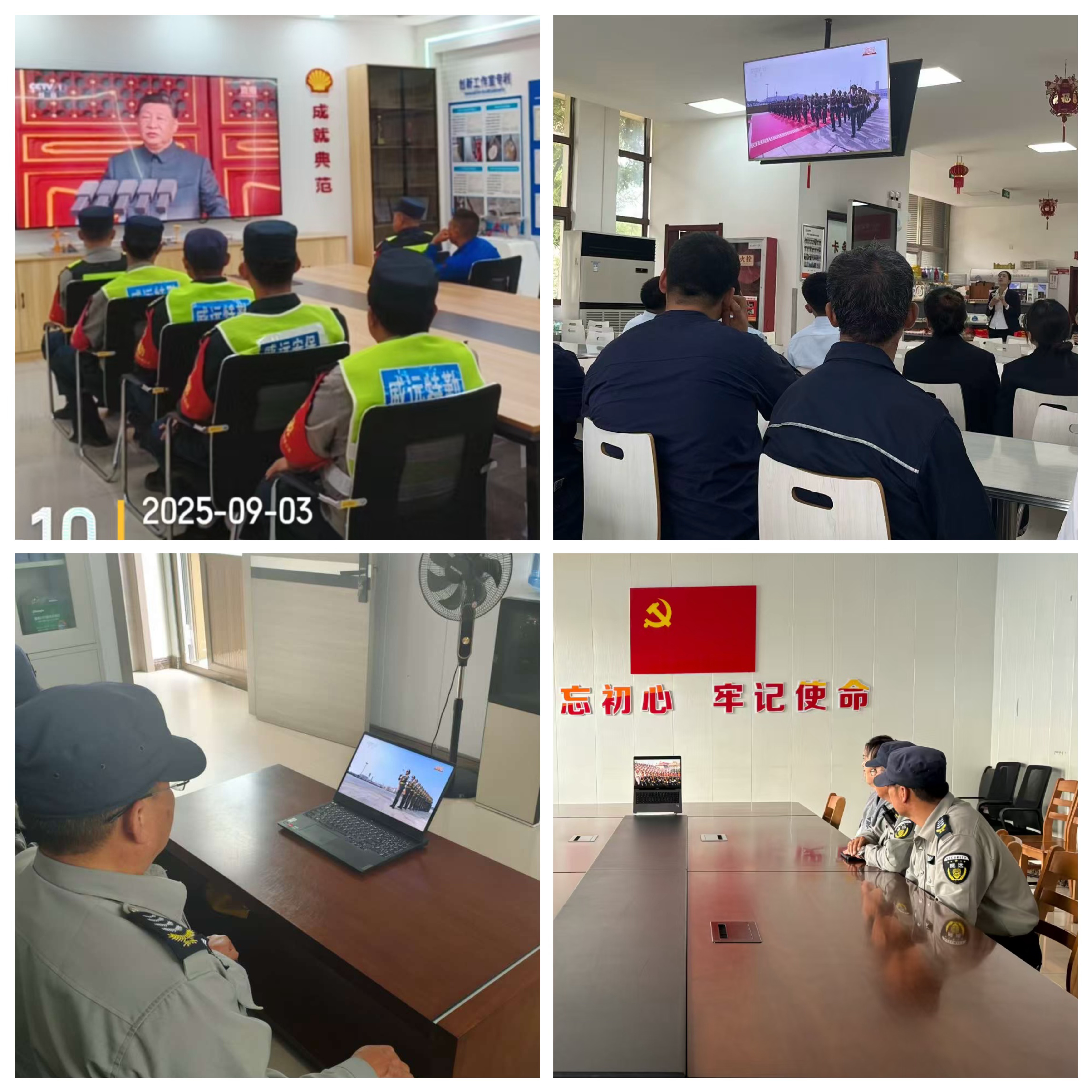 9月3日上午9时,纪念中国人民抗日战争暨世界反法西斯战争胜利80周年盛大阅兵式在北京天安门广场隆重举行。在这庄严的历史时刻,威远安保公司组织员工集体观看阅兵直播,共同见证这一具有重大历史意义的盛况。