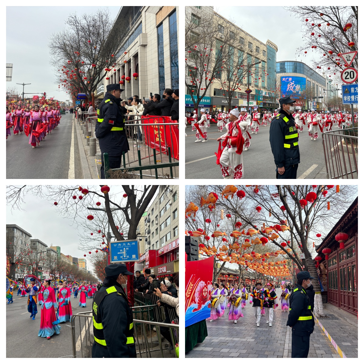 活动期间,全体执勤保安提前到岗,对展演沿途路线实施管控,二街至南门口两侧布置3000余个铁马,古城老街布置警戒带4000余米,严密细致做好秩序维护、交通保障等各项工作。